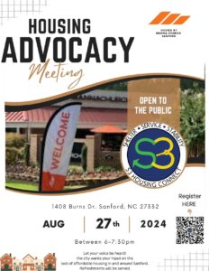 Please join us as we continue a series of community discussions around the lack of affordable housing in Sanford/Lee County. This will be an open dialogue where the S3 Housing/Advocacy Committee will share housing inventory data. Most importantly, this is an opportunity for the community to engage in constructive dialogue around solutions.